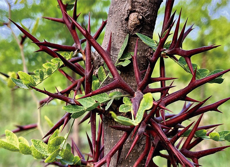 皂角树多年生枝,以及树干生长棘刺,棘刺多数分枝,刺粗壮,通常分枝即刺上长刺。皂角刺入药可活血并治疮癣,消肿排脓,搜风拔毒等等。药用价值很高。