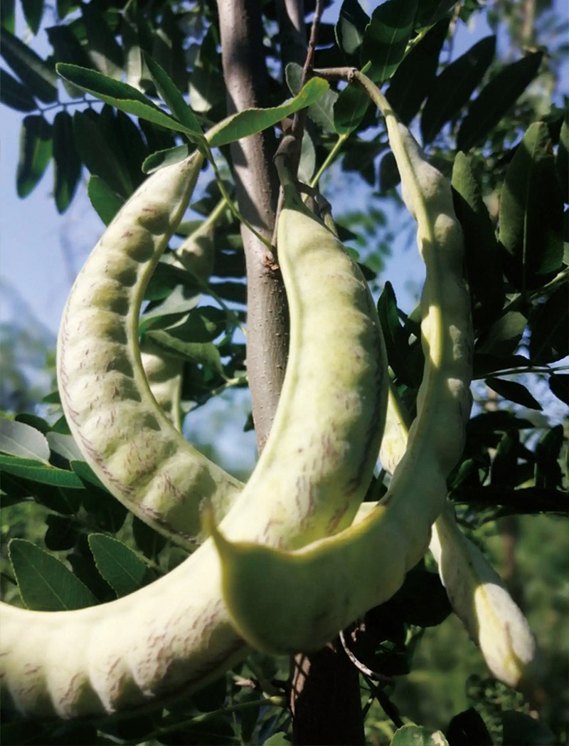 皂角树的果实就是皂角米。皂角米有雪莲子的美称。皂角米,属于高能量,高碳化合物,低蛋白低脂肪食物。并含有植物膳食纤维,富含胶原蛋白,有养心通脉,清肝明目的功效。口感香糯润滑,调和人体脏腑功能的珍贵纯天然绿色滋补食品,皂角米分单荚和双荚,单荚大多产自云南梁河,双荚则产与贵州毕节。为豆科植物皂荚的种子。秋季果实成熟时采收,剥取种子晒干。